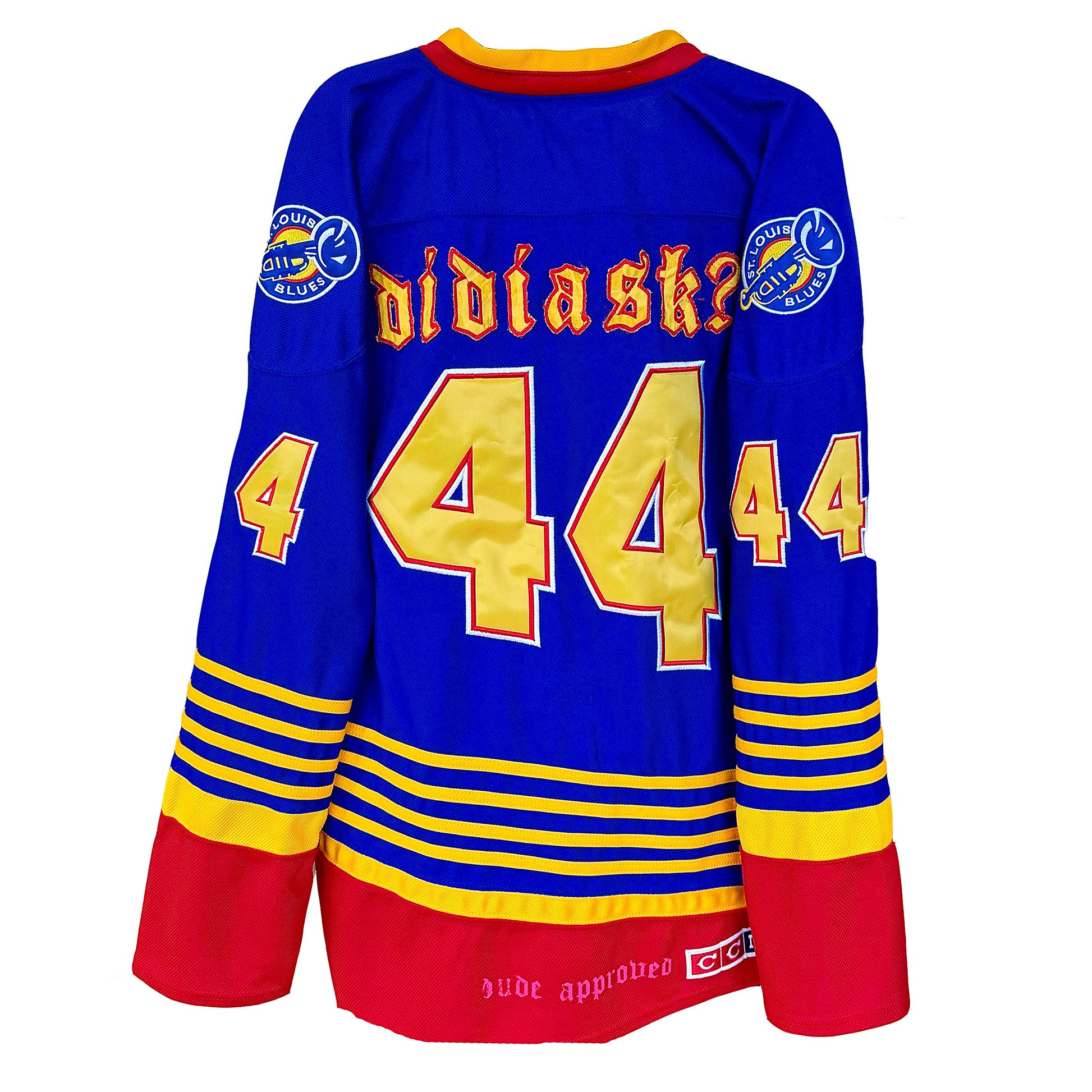 1/1 custom hockey jersey for the 44th song ‘didiask?’ in the 100 Week Project. Each stitch and embellishment has been carefully handcrafted and chosen to reflect the fusion of the song and the Born Dude brand. 1/1 custom hockey card and glow-in-the-dark "dude" patch included.