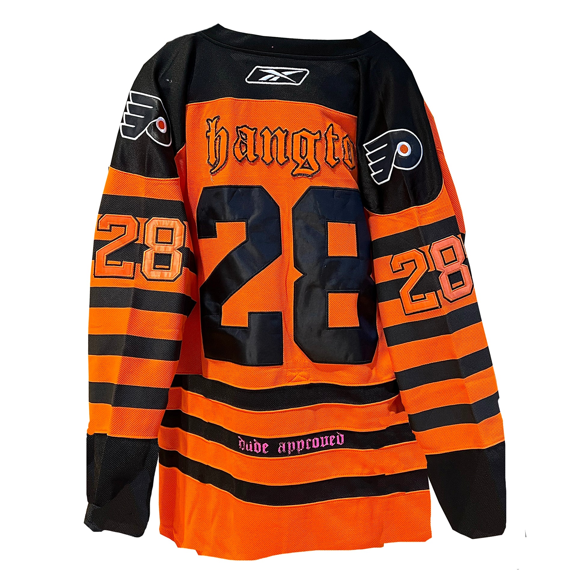 1/1 custom hockey jersey for the 28th song ‘hangto’ in the 100 Week Project. Each stitch and embellishment has been carefully handcrafted and chosen to reflect the fusion of the song and the Born Dude brand. 1/1 custom hockey card and glow-in-the-dark "dude" patch included.