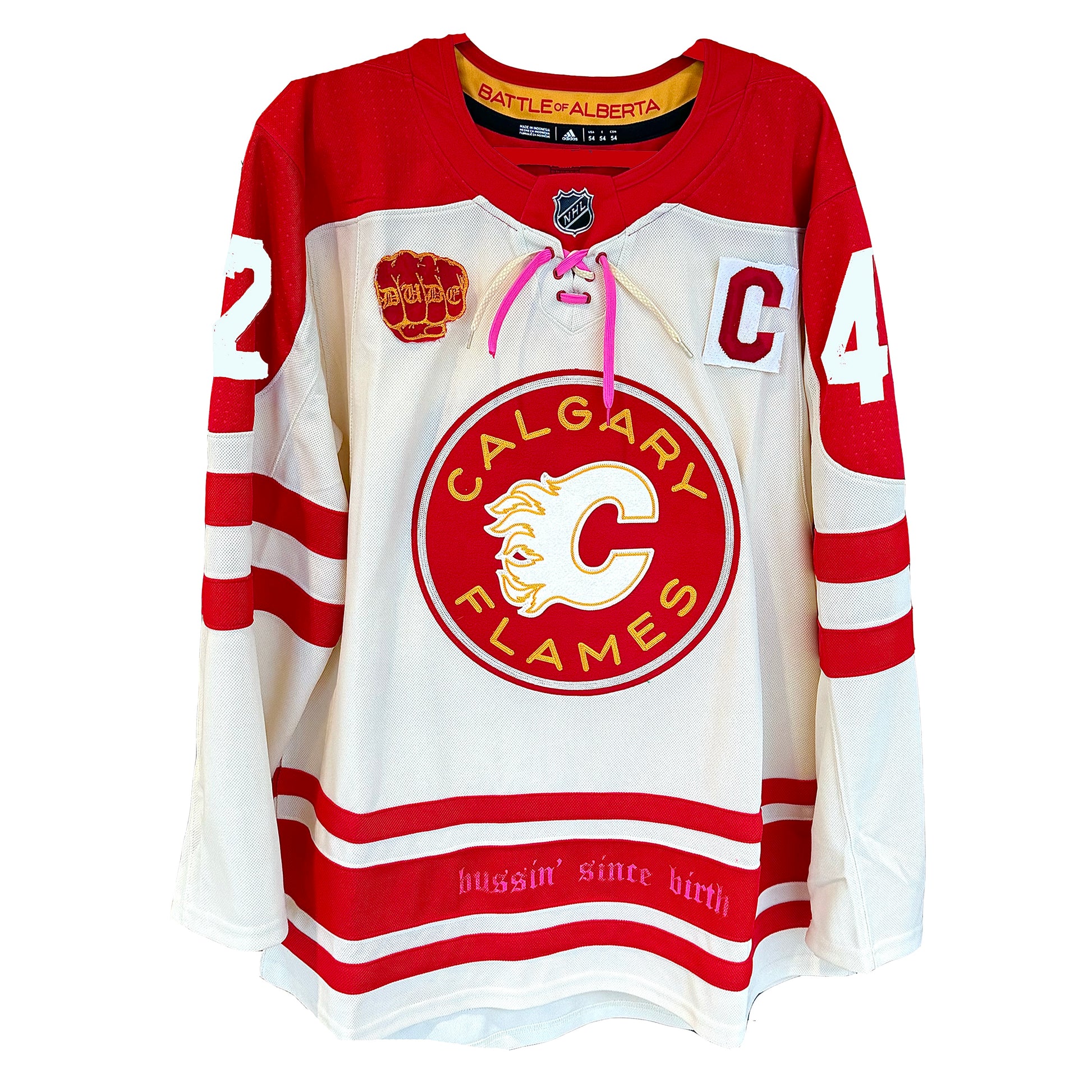 1/1 custom hockey jersey for the 42nd song ‘longstory...’ in the 100 Week Project. Each stitch and embellishment has been carefully handcrafted and chosen to reflect the fusion of the song and the Born Dude brand. 1/1 custom hockey card and glow-in-the-dark "dude" patch included.
