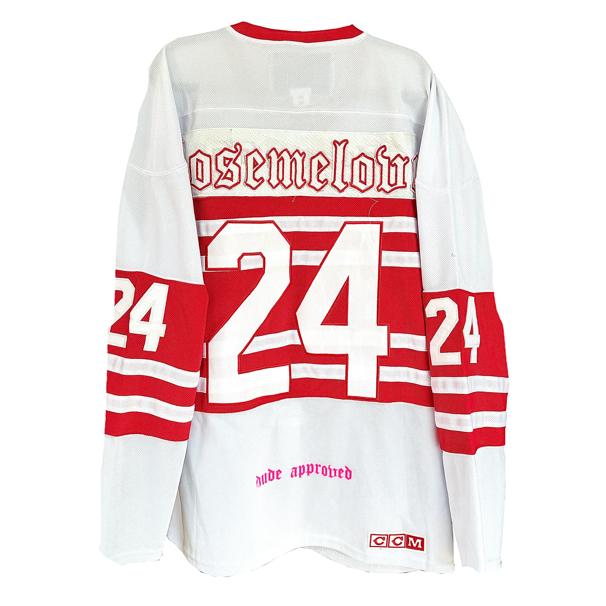 1/1 custom hockey jersey for the 24th song ‘losemelove’ in the 100 Week Project. Each stitch and embellishment has been carefully handcrafted and chosen to reflect the fusion of the song and the Born Dude brand. 1/1 custom hockey card and glow-in-the-dark "dude" patch included.