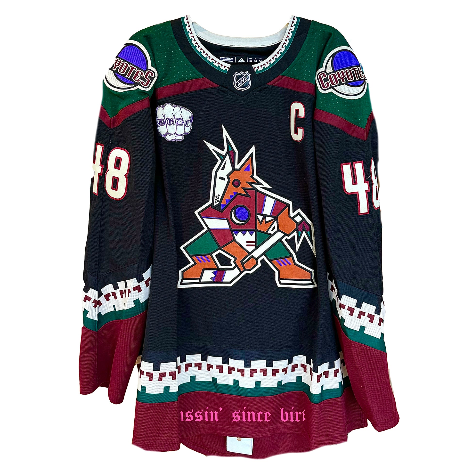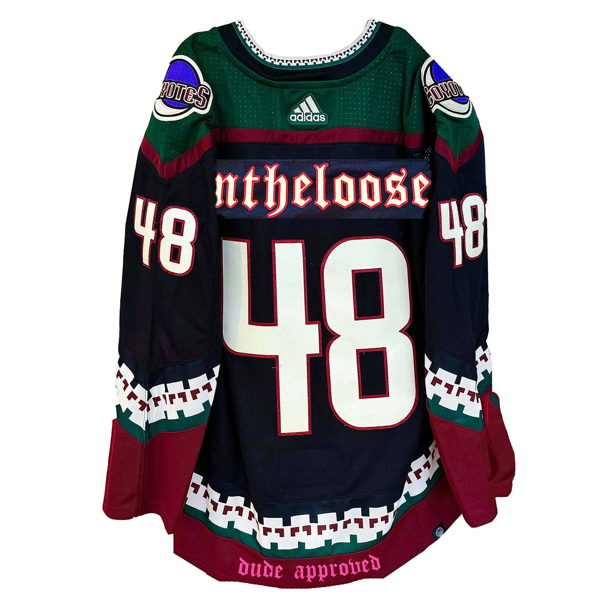 1/1 custom hockey jersey for the 48th song ‘ontheloose’ in the 100 Week Project. Each stitch and embellishment has been carefully handcrafted and chosen to reflect the fusion of the song and the Born Dude brand. 1/1 custom hockey card and glow-in-the-dark "dude" patch included.