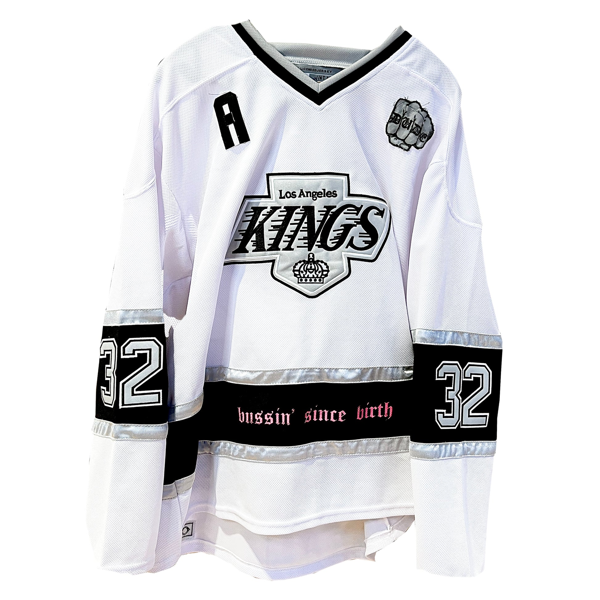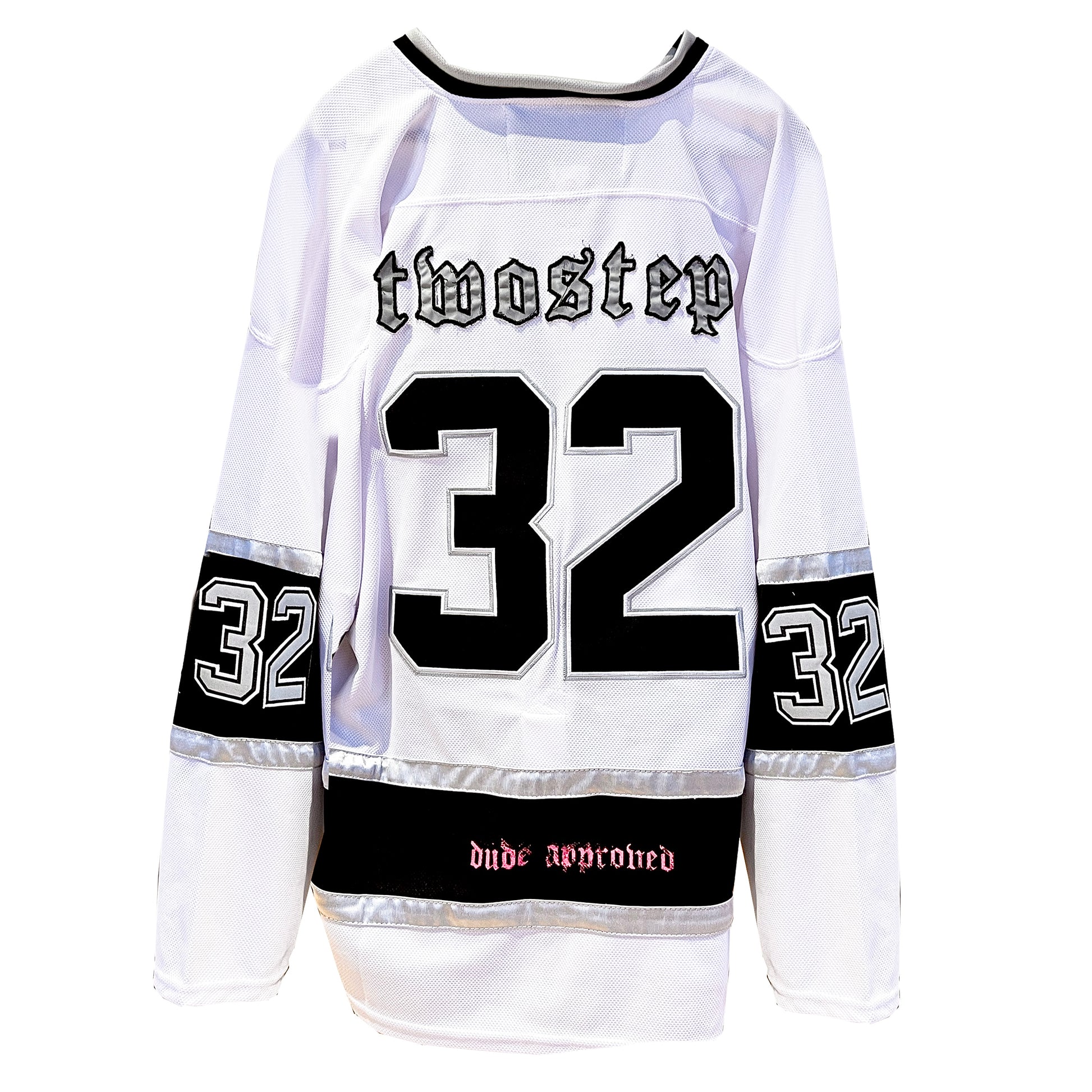 1/1 custom hockey jersey for the 32nd song ‘twostep’ in the 100 Week Project. Each stitch and embellishment has been carefully handcrafted and chosen to reflect the fusion of the song and the Born Dude brand. 1/1 custom hockey card and glow-in-the-dark "dude" patch included.